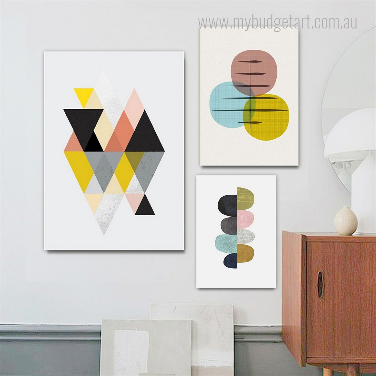 Transform your walls with vibrant Scandinavian boho art. This striking design features a playful arrangement of colorful geometric shapes—including bold triangles, circles, and spheres. Select a rolled canvas print for custom framing, or a ready-to-hang stretched canvas for an instant pop of modern colour.